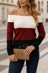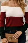 Kadın Uzun Kollu Omuzlardan Açık Uzun Kollu Blok çizgili Triko Bluz