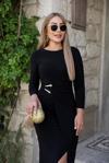 Kadın Uzun Kollu önden çapraz Detaylı Yandan Toka Detaylı Uzun Sandy Elbise