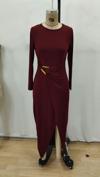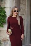 Kadın Uzun Kollu önden çapraz Detaylı Yandan Toka Detaylı Uzun Sandy Elbise