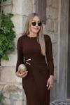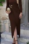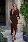 Kadın Uzun Kollu önden çapraz Detaylı Yandan Toka Detaylı Uzun Sandy Elbise