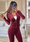 Kadın Uzun Kollu önden Fermuarlı Kadife Bluz Ve Pantolon Ikili Takım
