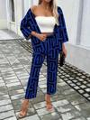 Kadın Uzun Kollu önü Açık Desenli Iki Iplik Ceket Ve Pantolon Ikili Takım