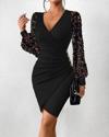 Kadın Uzun Kollu Pul Payetli Kruvaze Yaka Yandan Düğmeli Kısa Ithal Krep Elbise