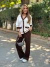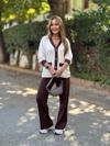 Kadın Uzun Kollu Ribanali Cep Detay Hırka Ve Bol Paça Pantolon Ikili Takım