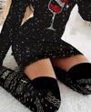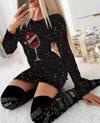 Kadın Uzun Kollu Taş Kadeh Baskı Mikro Kumaş Mini Boy Elbise (çorapsız)