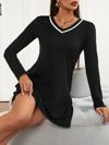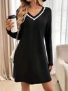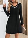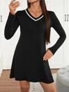 Kadın Uzun Kollu V şerit Yakalı Kısa Viskon Iki Iplik Elbise