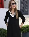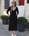 Kadın Uzun Kollu V şerit Yakalı Viskon Iki Iplik Elbise