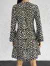 Kadın Uzun Kollu V Yaka çiçek Desenli Helen Kumaş Elbise