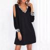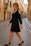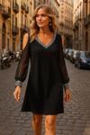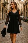 Kadın Uzun Kollu V Yaka Kollar Tül Yırtmaç Detay Kol Manşetleri Ve Yaka Payet Krep Elbise
