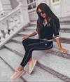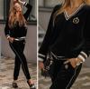 Kadın Uzun Kollu V Yaka Yakası Ve Kol Ağzı şerit Detay Kadife Takım