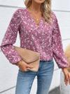 Kadın Uzun Kollu V Yakalı çiçek Desenli Modal Bluz