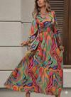 Kadın Uzun Kollu V Yakalı Desenli Maxi Süprem Elbise