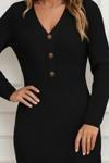 Mdbshop MDB Kadın Uzun Kollu V Yakalı önden Düğmeli Kısa Triko Elbise