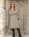 Kadın Uzun Kollu V Yakalı Salaş Midi Akrilik Elbise