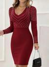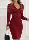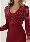 Kadın Uzun Kollu V Yakalı Taşlı Mini Ithal Krep Elbise
