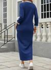 Kadın Uzun Kollu V Yakalı Yanlardan Yırtmaçlı Uzun Viskon Iki Iplik Elbise