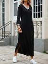 Kadın Uzun Kollu V Yakalı Yanlardan Yırtmaçlı Uzun Viskon Iki Iplik Elbise