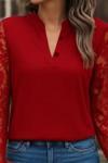 Kadın Uzun Kollu Yaka Düğme Detay Güpürlü Kol Krep Bluz