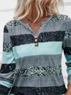 Kadın Uzun Kollu Yakadan Düğmeli çizgili Desenli Süprem Bluz