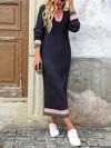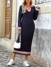 Kadın Uzun Kollu Yakalı çok Renkli Triko Uzun Elbise