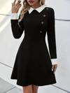 Kadın Uzun Kollu Yakalı Düğmeli Kısa Modal Mini Elbise