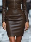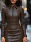 Kadın Uzun Kollu Yakalı Fermuarlı Mini Deri Elbise