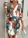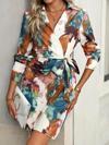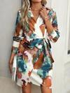 Kadın Uzun Kollu Yakalı Yandan Bağlamalı Mini Desenli Modal Elbise