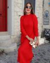 Kadın Uzun Kollu Yarı Balıkçı Yaka Arkadan Pencere Detaylı Bağcıklı Midi Triko Elbise