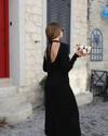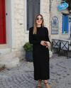 Kadın Uzun Kollu Yarı Balıkçı Yaka Arkadan Pencere Detaylı Bağcıklı Midi Triko Elbise