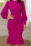 Kadın Uzun Kollu Yarı Balıkçı Yaka Etek Ucu Fırfır Detaylı Midi Ithal Krep Elbise