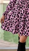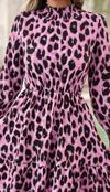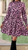 Kadın Uzun Kollu Yarı Balıkçı Yaka Leopar Desenli Modal Mini Elbise