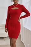 Kadın Uzun Kollu Yarı Balıkçı Yaka Pencere Göğüs Detay Mini Triko Elbise