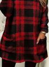 Kadın Uzun Kollu Yarı Balıkçı Yakalı Cep Detaylı Ekoseli Dokuma Tunik