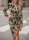 Kadın Uzun Kollu Yuvarlak Yaka Belden Kuşaklı önden Yırtmaçlı örme Krep Elbise