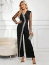 Kadın Uzun V Yakalı önden Pulpayet Detaylı Tüllü Uzun Ithal Krep Tulum