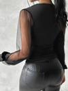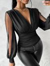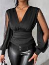 Kadın Uzun Yırtmaç Tül Detaylı Derin V Yakalı Sandy Bluz