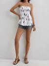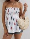 Kadın Yaprak Desenli Göğsü Gipeli Mosskrep Straplez Bluz