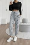 Kadın Yüksek Bel Bağcıklı Desenli Iki Iplik Pantolon