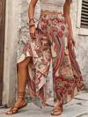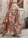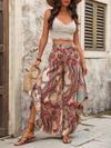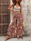 Kadın Yüksek Bel Beli Lastikli Desenli Geniş Paçalı Süprem Pantolon