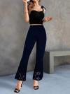 Kadın Yüksek Bel Paçaya Doğru Genişleyen Lazer çiçek Kesim Detaylı Ithal Krep Pantolon