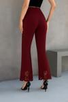 Kadın Yüksek Bel Paçaya Doğru Genişleyen Lazer çiçek Kesim Detaylı Ithal Krep Pantolon