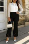 MDB Kadın Yüksek Bel Paçaya Doğru Genişleyen Lazer çiçek Kesim Detaylı Ithal Krep Pantolon