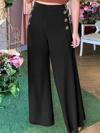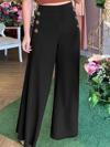 Kadın Yüksek Bel Yan Düğme Detaylı Geniş Paçalı Ithal Krep Pantolon