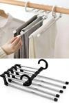 Ürün, beşli askı tasarımı ile birden fazla pantolonu düzenli bir şekilde asmanıza olanak tanır.