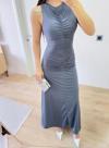 Kolsuz Büzgülü Uzun Elbise - Füme