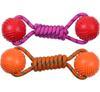 Köpeklerinizin sağlıklı bir şekilde çiğneme alışkanlığı edinmesi ve eğlenceli vakit geçirmesi için tasarlanmış bu dayanıklı kauçuk toplu oyuncak, kırmızı, mavi ve turuncu renk seçenekleriyle sunulmaktadır. Kauçuk top ve sağlam ipten oluşan bu oyuncak, diş sağlığını destekleyerek dişlerin temizlenmesine yardımcı olur. Fırlatma ve yakalama oyunları için idealdir ve köpeklerin enerjisini atmasına yardımcı olur. Dayanıklı yapısı sayesinde uzun süreli kullanım sunar.