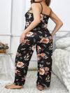 Büyük Beden Siyah Üstüne Çiçek Desenli İnce Askılı 2li Pijama Takımı, siyahın asaletini romantik çiçek desenleriyle buluşturuyor.