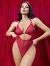 Transparan kumaşın zarif akışı, kırmızının ateşiyle birleşiyor ve ortaya baş döndüren bir siluet çıkıyor. Hafif yapısı tenine yumuşakça dokunurken, vücudu saran kesimiyle feminenliğini cesurca vurguluyor. Romantik detaylar ve fantezi havası ile geceye tutkuyu fısıldıyor.