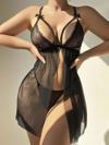 Mdbshop MDB MdbShop Siyah Dantel İşlemeli Göğüs İp Detaylı Dekolteli Fantezi Tül Gecelik String Takımı