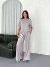 Arona MDB Osy odal Yumuşak Dokulu Kumaş Bisiklet Yaka Tshirt Bol Paça Pantalon Ikili Takım Boyalı Gri